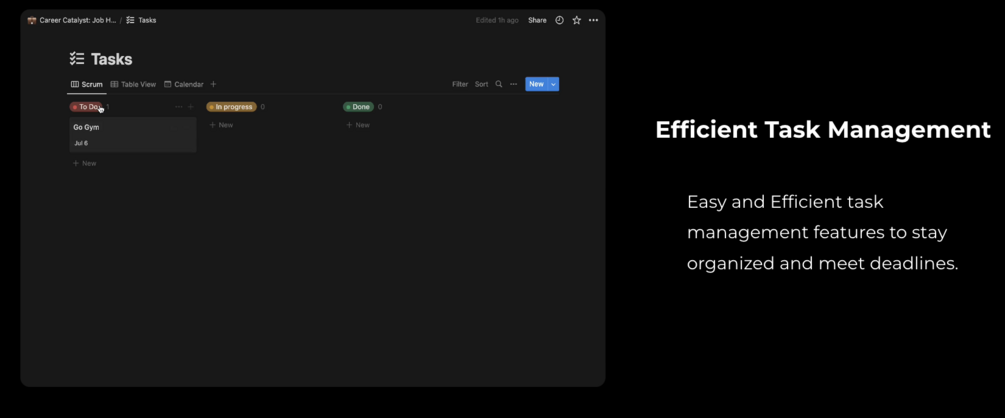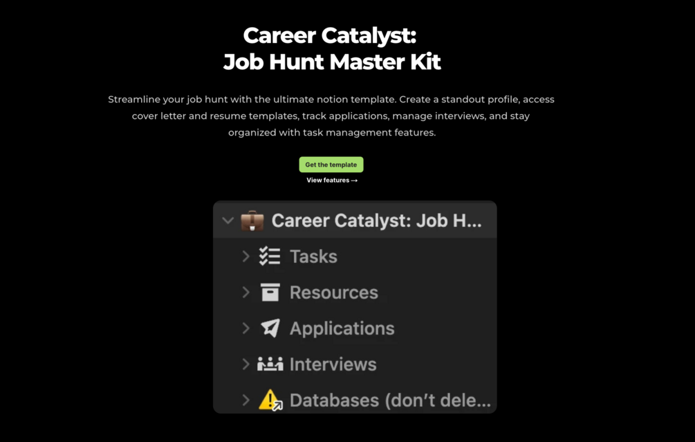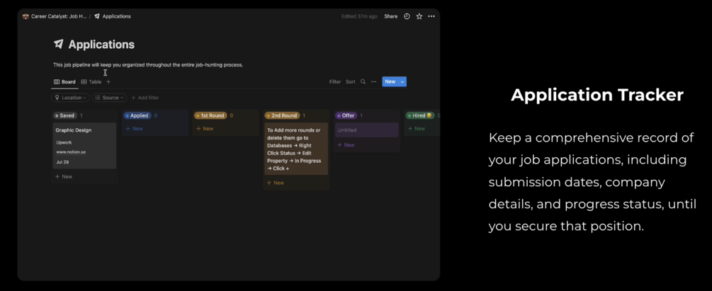 Hey there Fellow Notion user, streamline your job hunting with the ultimate notion template that lets you Create a profile where you can access cover letter, resume, track applications, manage interviews and stay organized with task management features.