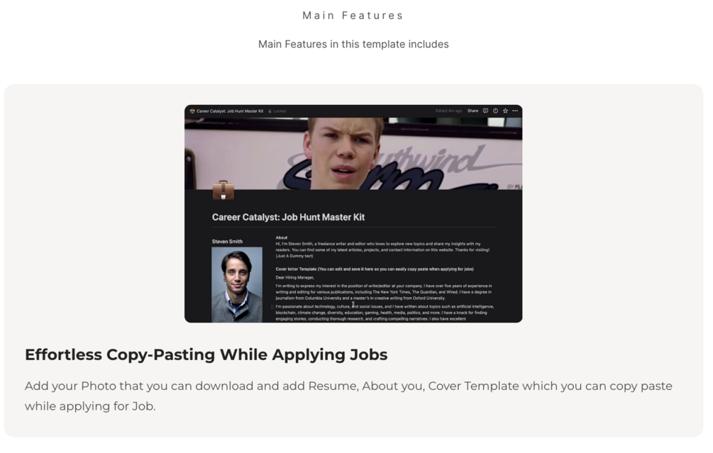 You get a template that you can use for job hunting process, The template main features includes:-